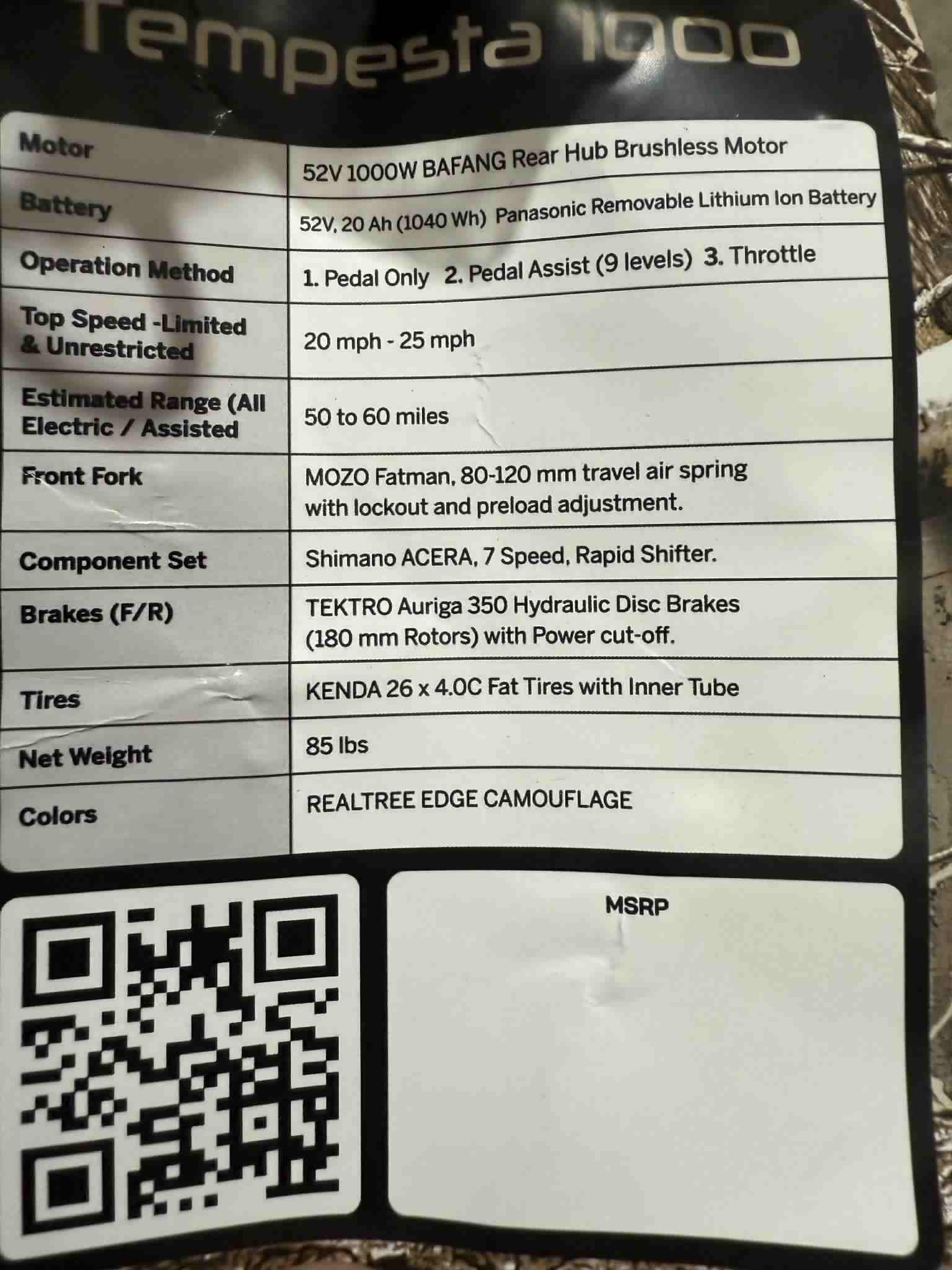 Home Shop E-Bikes & Electric Off-Road Dirt Bikes ETTRONE TEMPESTA 1000 E BIKE CAMO (Demo bikes)