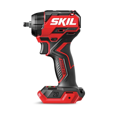 The SKIL PWRCORE 20™ Brushless 20V 3/8-inch Compact Impact Wrench gives you big power in a compact, lightweight package with up to 170 foot-pounds of fastening torque, 220 foot-pounds of nut-busting torque, and up to 3,950 IPM for driving tough nuts and bolts. At more than 1 inch shorter than its previous generation, this cordless impact wrench is an ideal power tool for working overhead or busting hard-to-reach car lug nuts and caliper bolts. Its 3/8-inch square anvil features a friction ring for easy socket changes, and its digital brushless motor combined with three-speed selection provides high-performance power and precise control. Its Halo Light™ provides 5X more light than common LEDs while reducing shadows—and it lights up your workspace for up to 10 minutes.