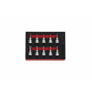 10-Piece 3/8" Drive Standard Length Torx Bit Set. Set Includes: T10, T15, T20, T25, T27, T30, T40, T45, T50 & T55 Torx Bits. Modular 1/9th EVA foam tool storage solution insert included.