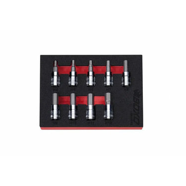 9-Piece 3/8" Drive Standard Length Hex Bit Socket Set. Set Includes: H4, H5, H6, H7, H8, H9, H10, H11 & H12 bit sizes in a 1/9th drawer EVA foam tool storage solution insert.