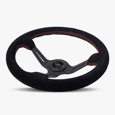 The Le Mans | Black Alcantara Suede | Black Spoke | Red Stitch