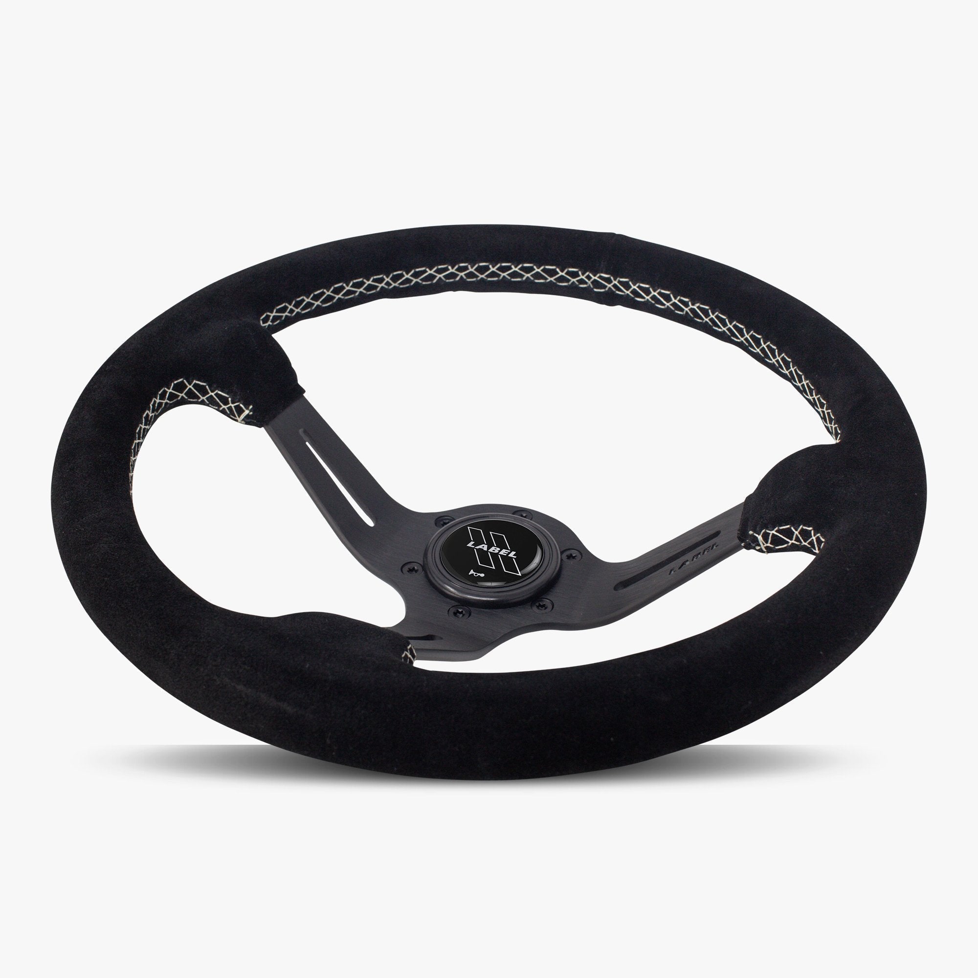 Home Shop Added Gear & Kits The Le Mans | Black Alcantara Suede | Black Spoke | White Stitch