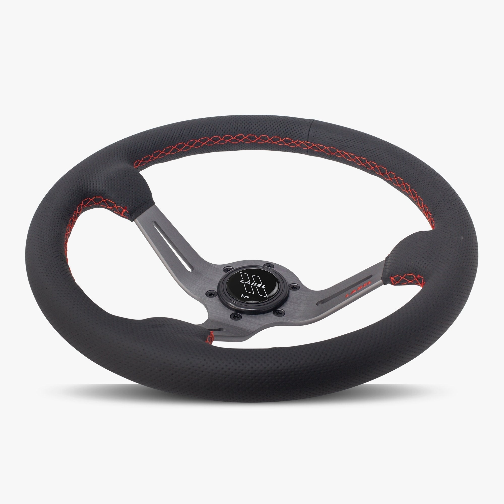 The Le Mans | Black Perforated Leather | Graphite Spoke | Red Stitch