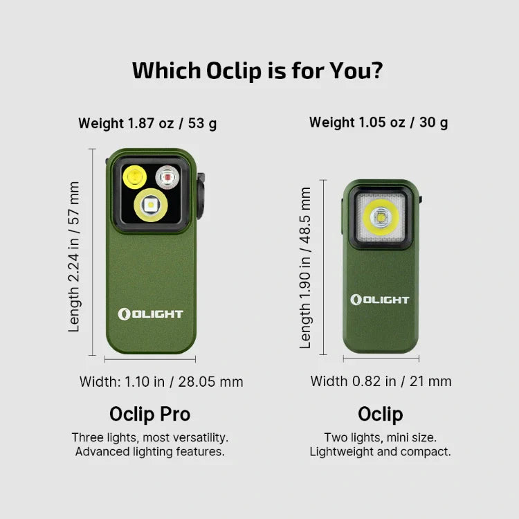 - Olight's First Clip Light with 3 Lighting Solutions: Oclip Pro comes with 500lm white flood, 120-meter range spot, and 40/4lm red light, switching by rotating the side selector.