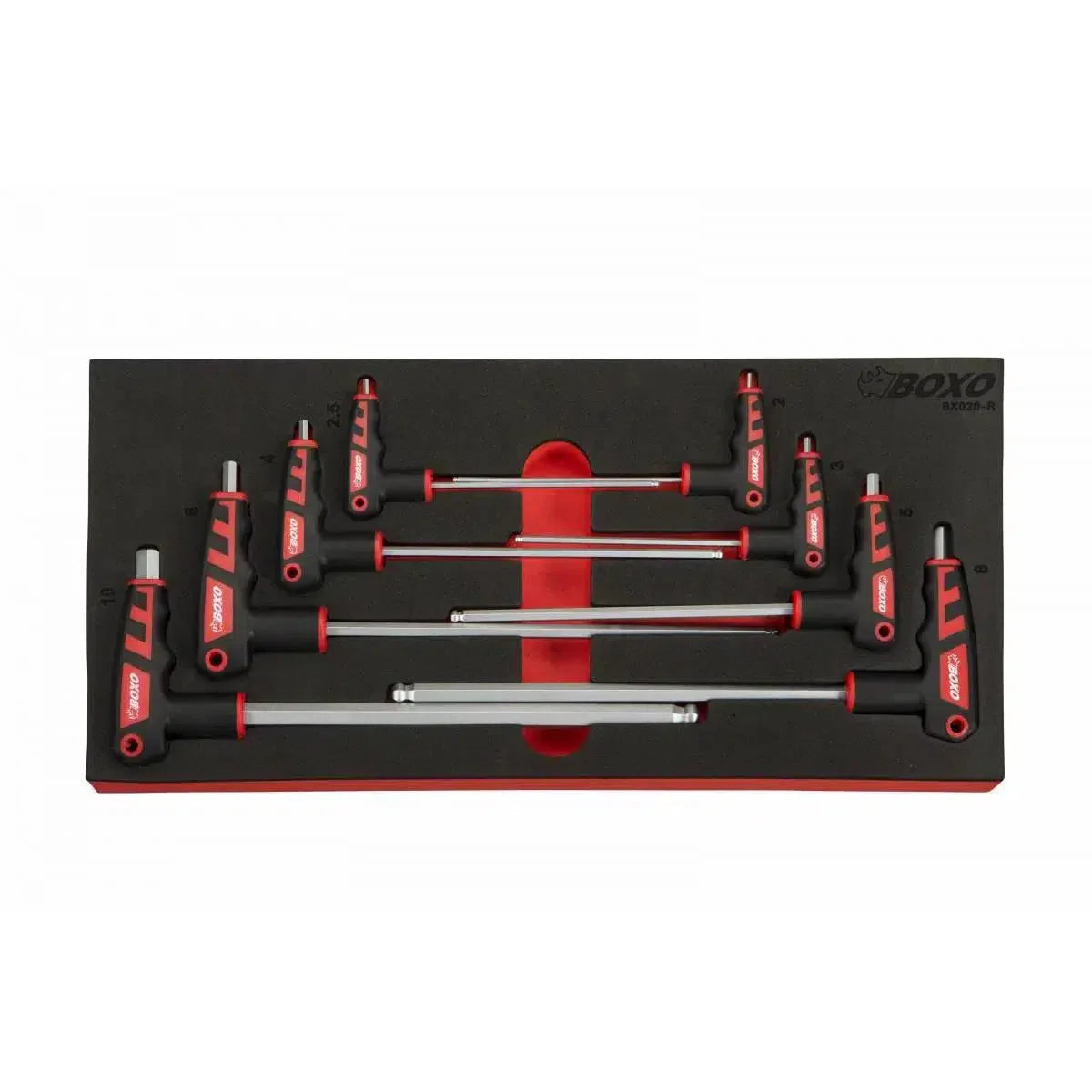 BoxoUSA 8-Piece Metric 2 Way T-Handle Ball Hex Key Set | 1/3rd EVA Foam BX020-R BoxoUSA 8-Piece Metric 2 Way T-Handle Ball Hex Key Set | 1/3rd EVA Foam BX020-R