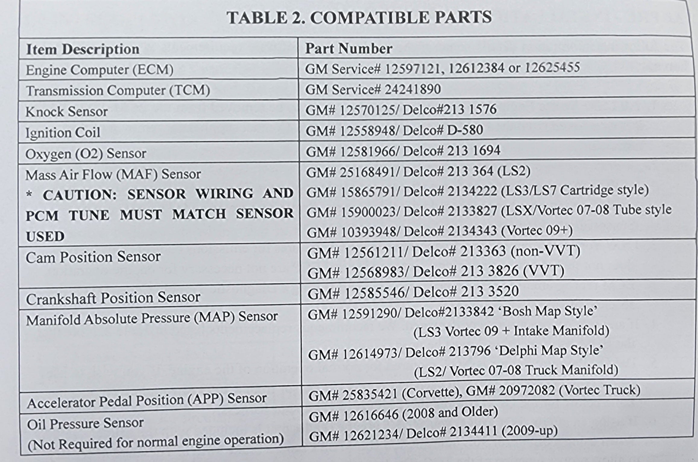 ⚠️ Note: 2014+ 6.0L Vortec applications originally using the E78 ECM will require conversion to an E38 ECM and an older-style throttle body for compatibility.