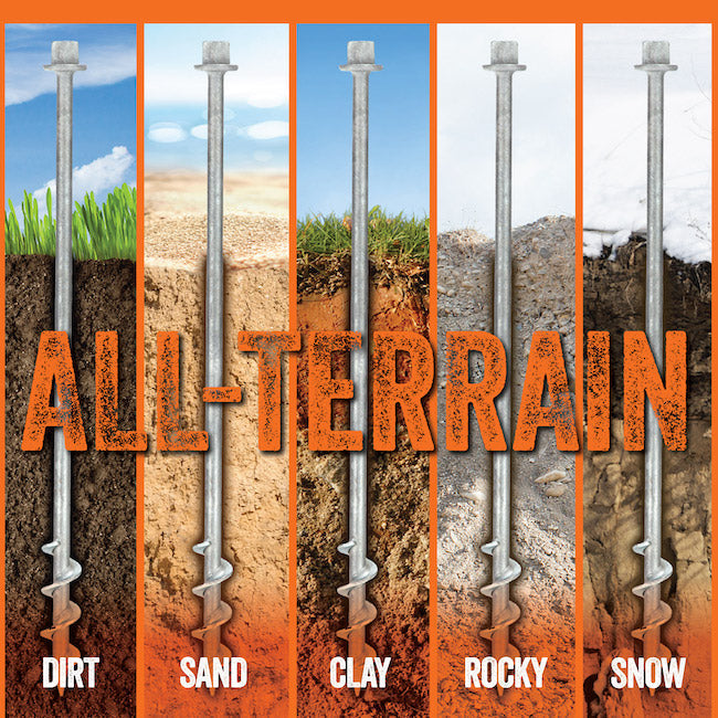 - Installed and removed using a high-torque impact drill, providing greater force and safety without protruding above the ground.
