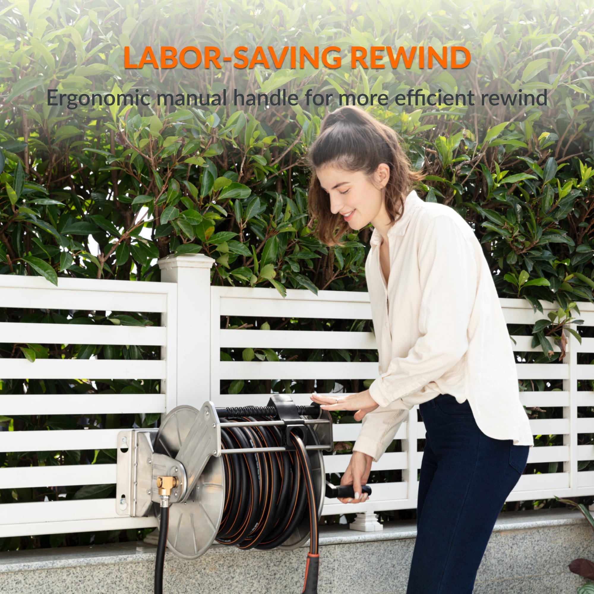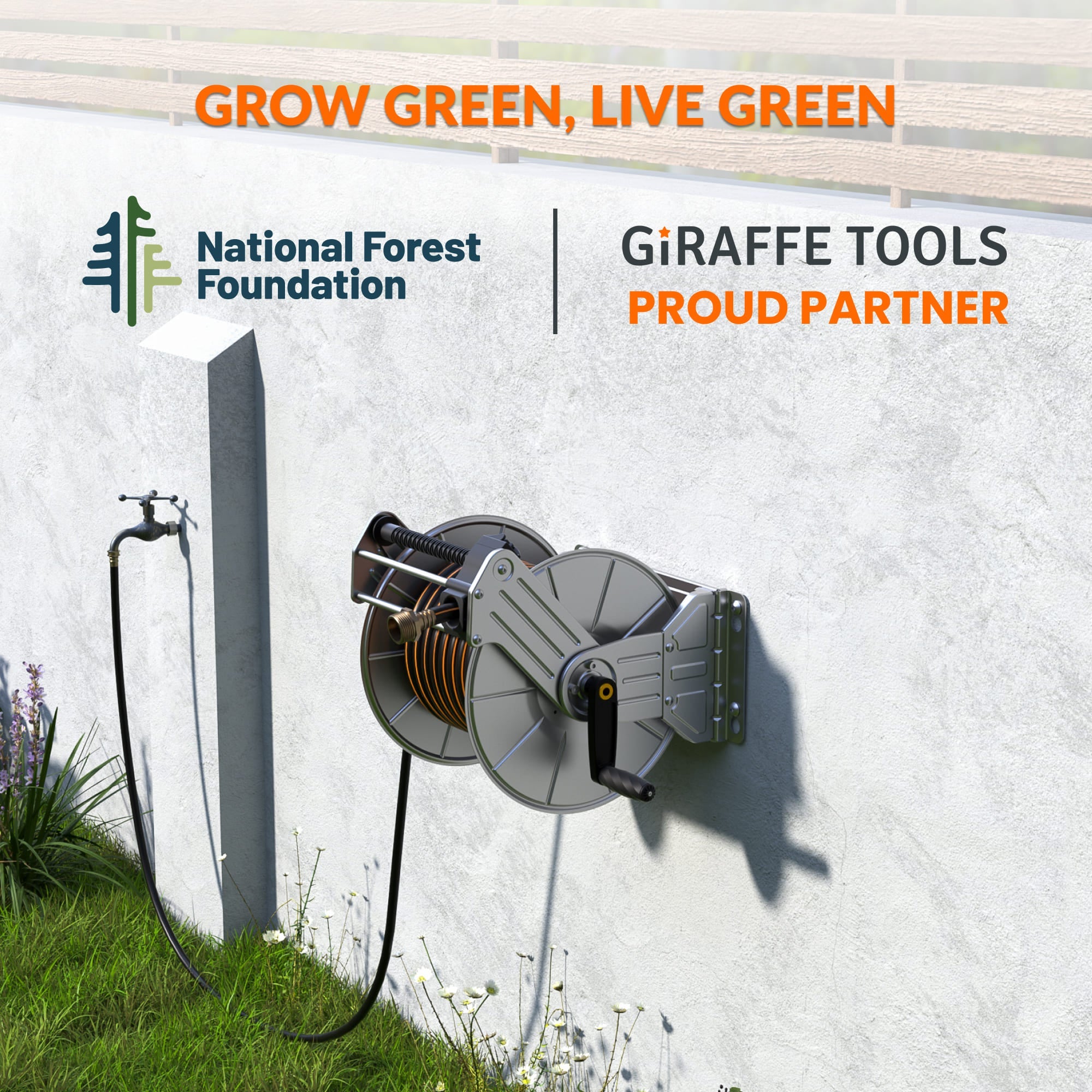 Organize your outdoor space with a 304 stainless steel wall-mounted hose reel from Giraffe Tools. Rust-proof, space-saving design for gardens, garages & patios.