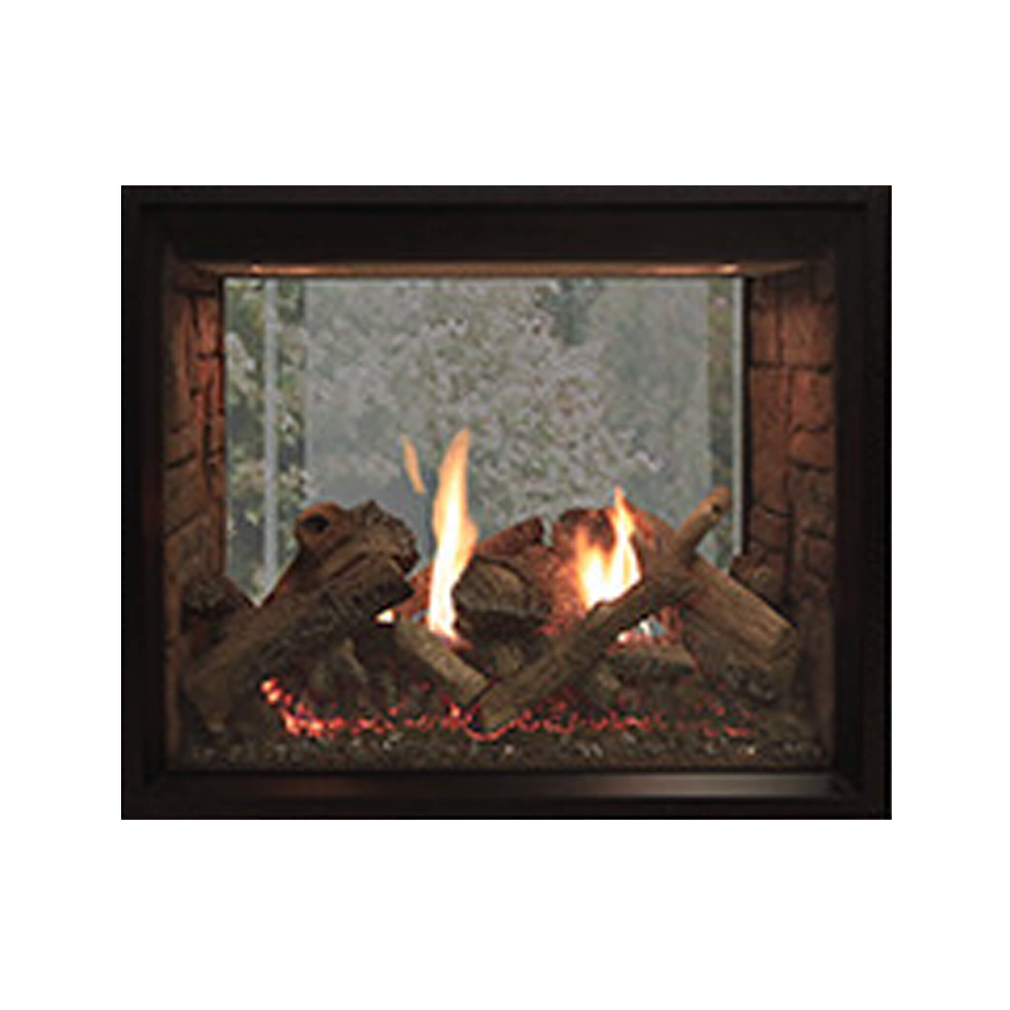 - Enjoy the warmth and charm of a lively fire from two different spaces with the see-through design.Â