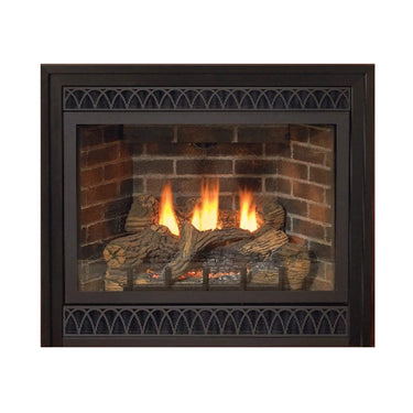 The Tahoe Deluxe Fireplace effortlessly combines classic charm with modern functionality. Its Contour tube-style burner and hand-painted ceramic fiber log set create a natural, dancing flame that transforms any room into a cozy retreat. The large tempered glass window offers a crystal-clear view of the mesmerizing fire, framed by optional liners in styles like Aged Brick, Herringbone, and Stacked Limestone to perfectly match your décor.