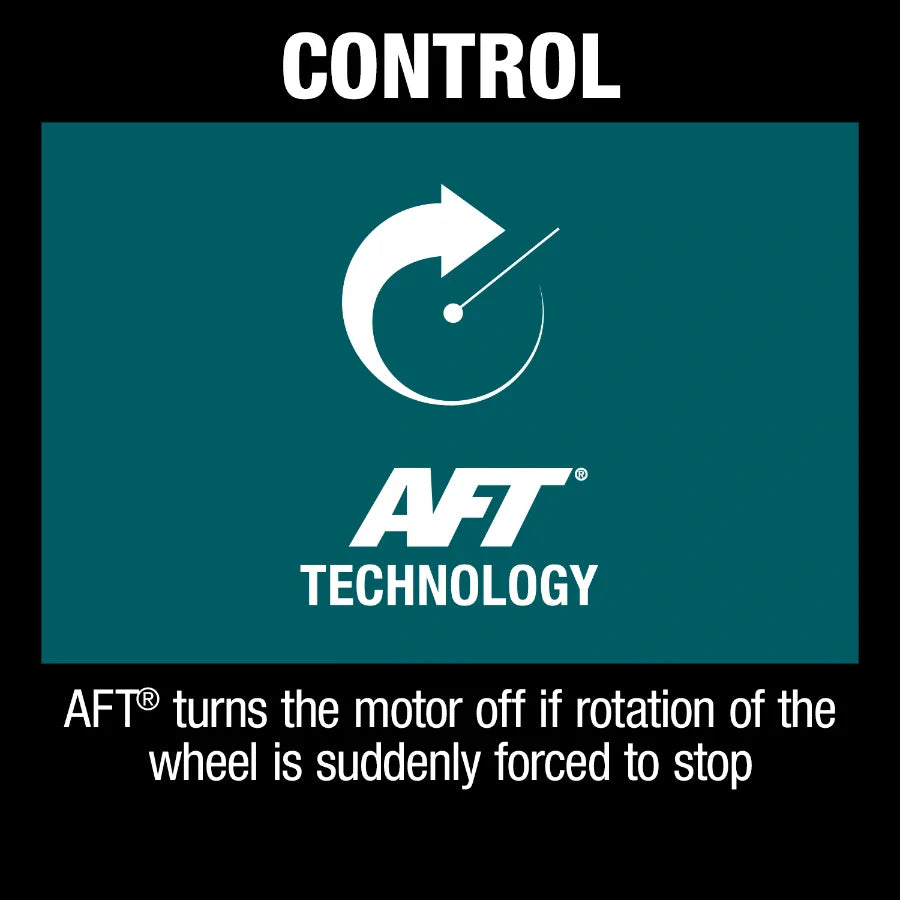 • Active Feedback-sensing Technology (AFT®) turns the motor off if rotation of the wheel is suddenly forced to stop