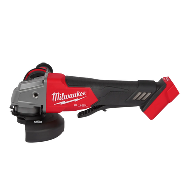 Our M18 FUEL™ 4-1/2" / 5" Braking Grinder Paddle Switch, No Lock is the next advancement in power and performance, generating 11A corded power, fastest cutting, and delivering up to 135 cuts per charge. The M18 FUEL™ 4-1/2" / 5" Grinder generates 11A corded power allowing you to complete the toughest grinding and cutting applications, all on the M18™ Cordless System. The POWERSTATE™ Brushless Motor delivers maximum sustained power and 8,500 RPM to remove material faster and increase productivity. REDLINK PLUS™ Intelligence ensures unmatched levels of performance, protection, and compatibility. The M18 FUEL™ 4-1/2" / 5" Grinder includes an electronic clutch for kickback protection, as well as overload protection to maximize motor life. The M18™ REDLITHIUM™ HIGH OUTPUT™ XC6.0 Batteries (not included) deliver 50% more power while running 50% cooler than our M18™ REDLITHIUM™ XC Batteries and are compatible with 200+ Tools in the M18™ System. With tool-free accessory and guard adjustments, you will experience faster accessory changes, and less downtime, while remaining fully compatible with the most common accessories in the market. The MILWAUKEE® M18 FUEL™ 4-1/2" / 5" Grinder takes cordless grinders to the next level in performance and run-time.