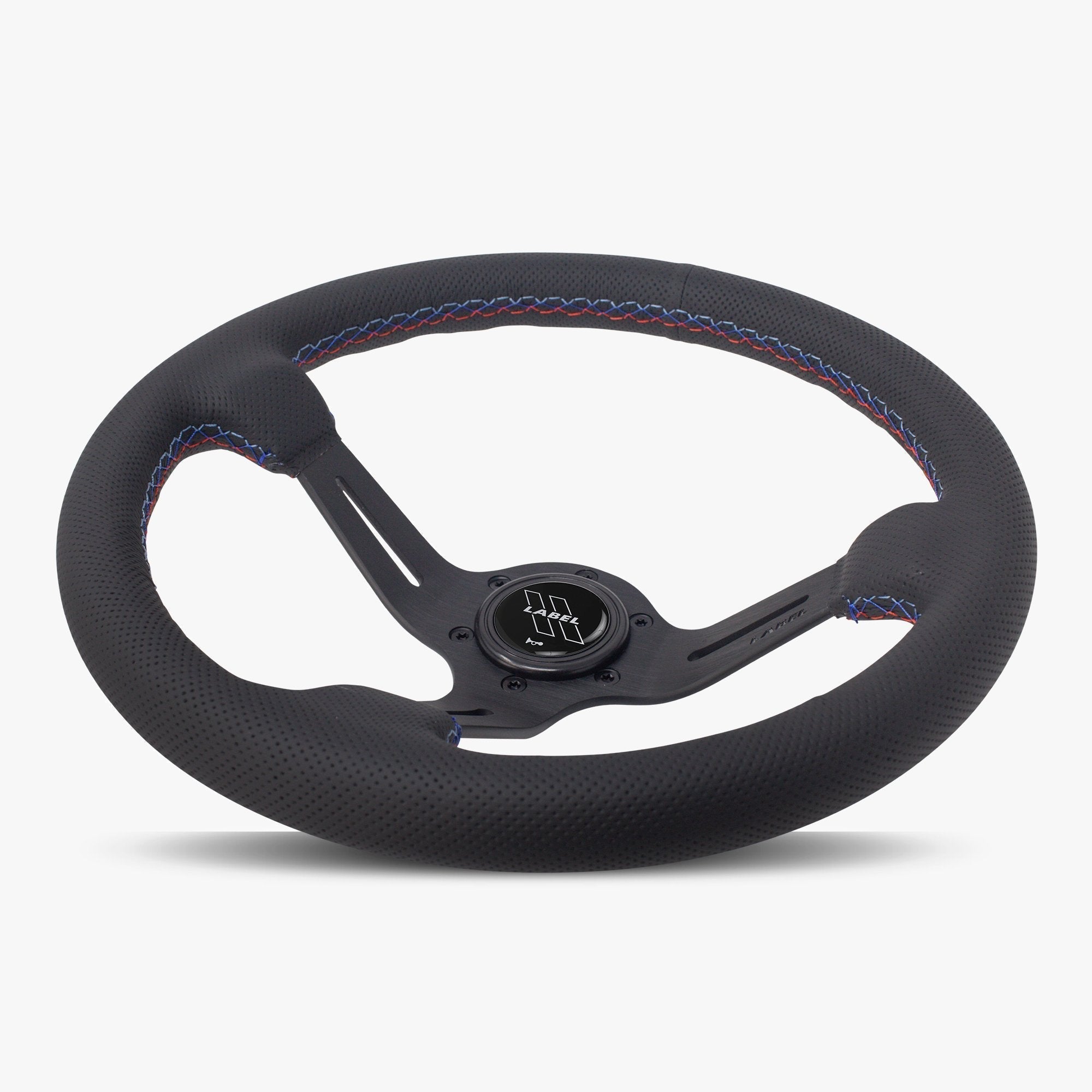 The Le Mans | Black Perforated Leather | Black Spoke | Bavarian Stitch
