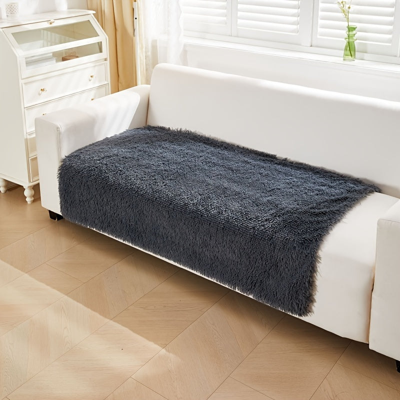 1pc Long Plush Dog Blanket, Soft Dog Throw Blanket, Reversible Dog Calming Bed Mat Sofa Cover