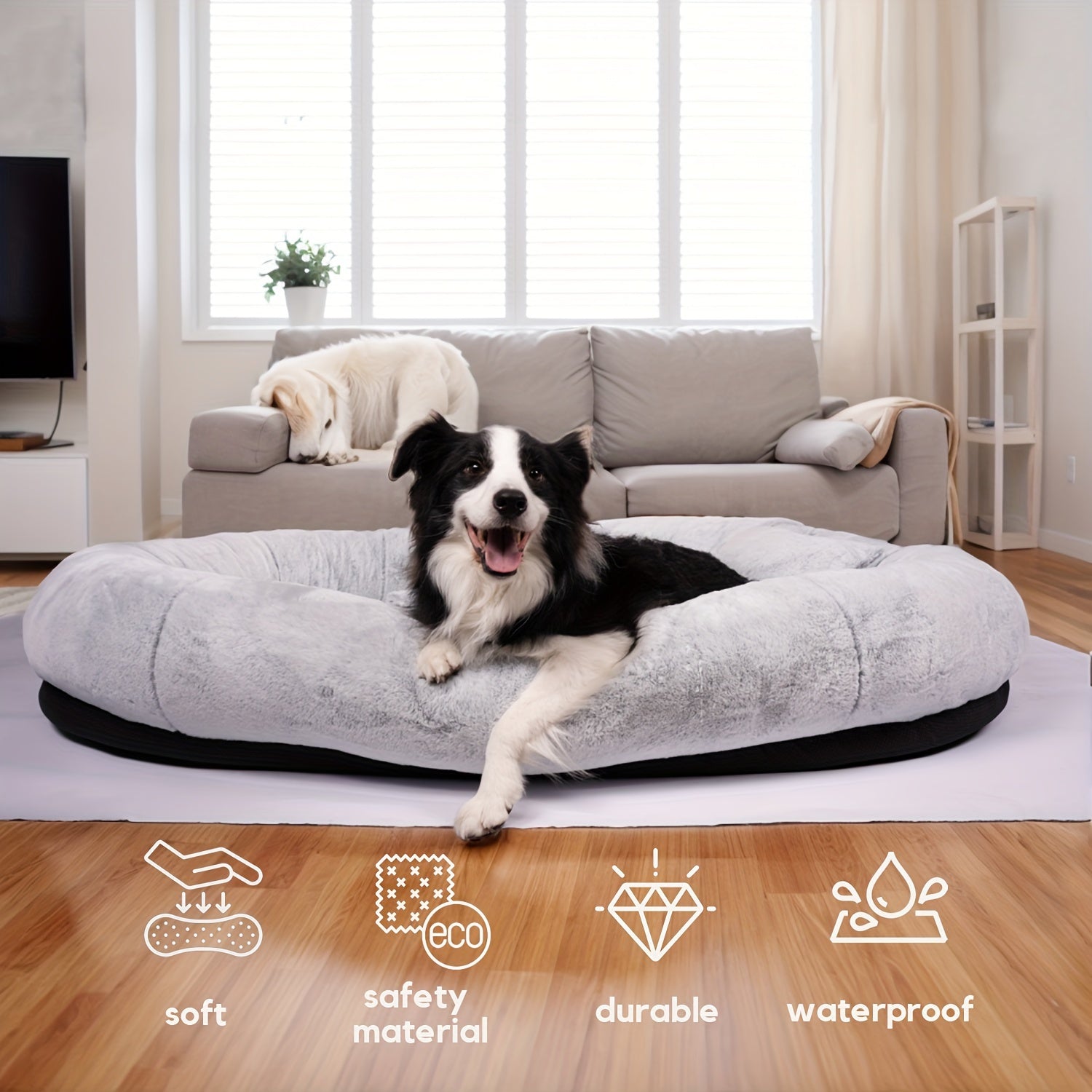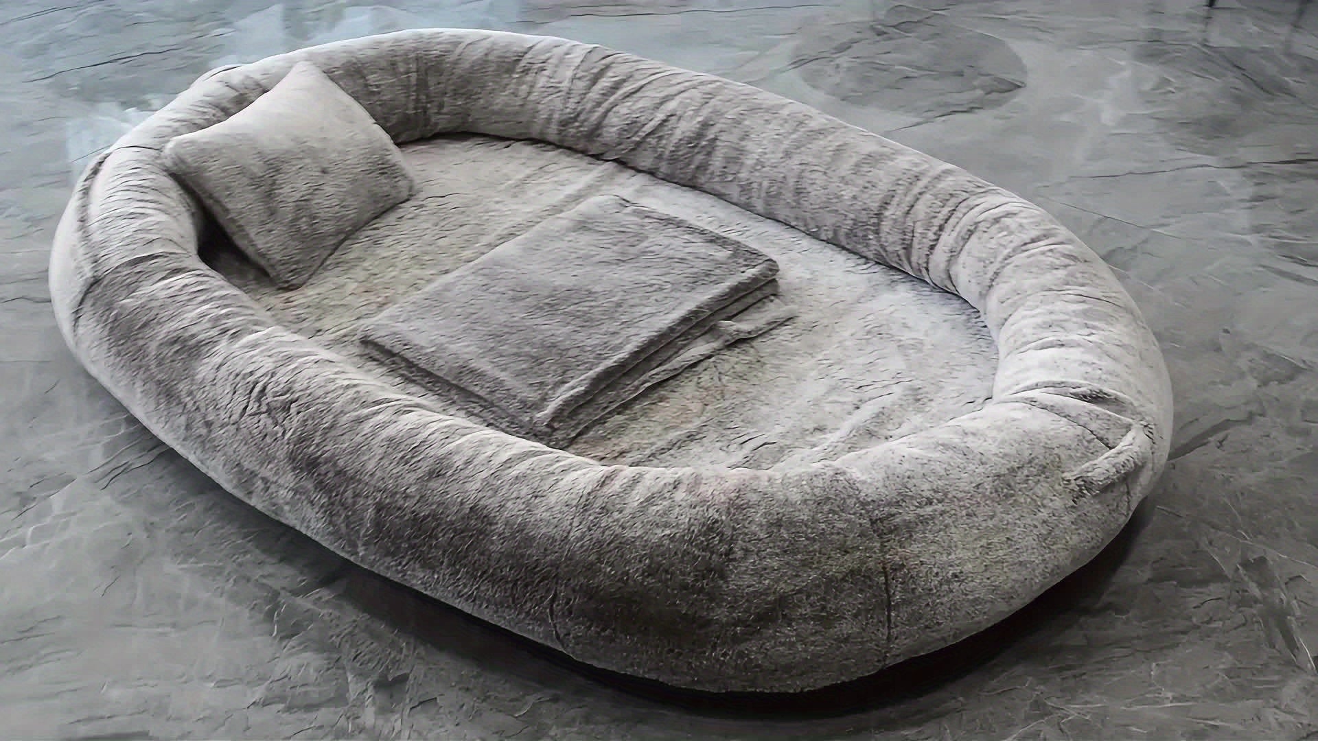 [Cozy Dog Bed] Orthopedic Faux Fur Dog Bed | Cozy Human-Sized Dog Bed For All Breeds - 71"x45"x14" With Blanket And Pillow, Washable, Includes Plush Pillow & Blanket