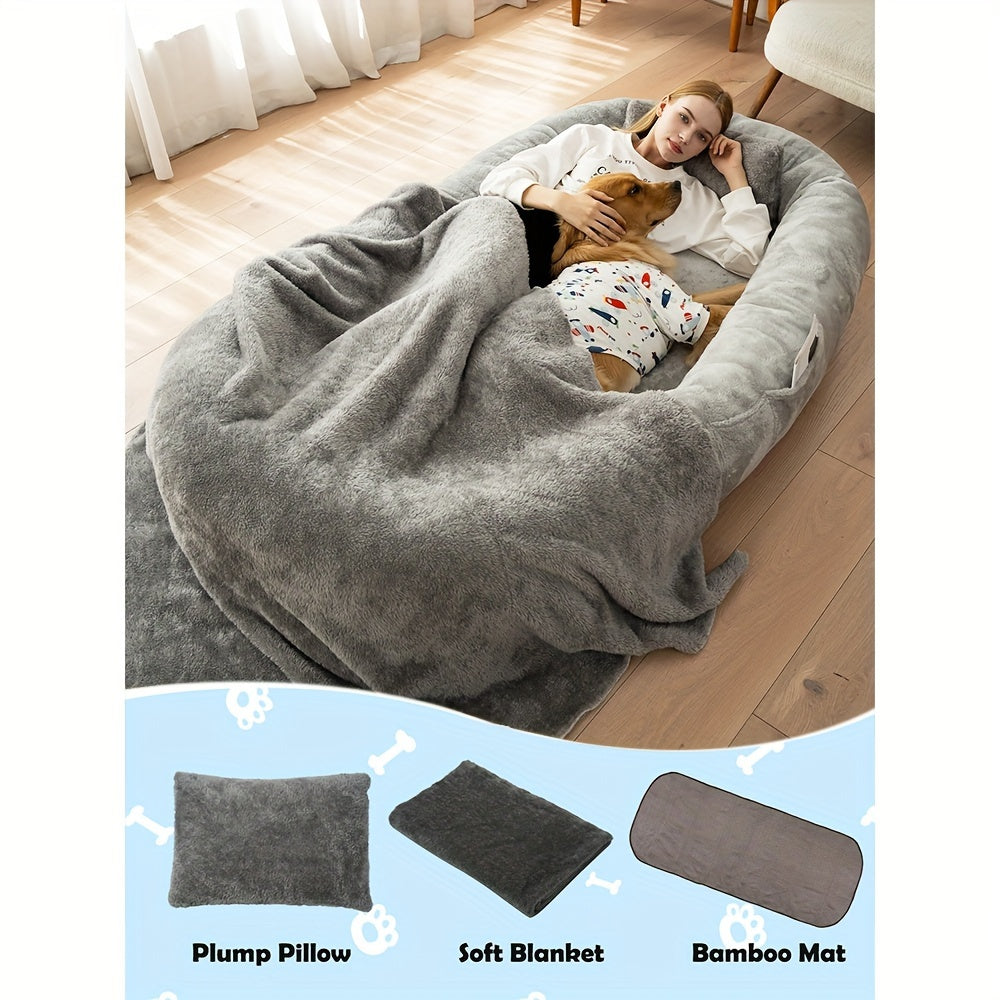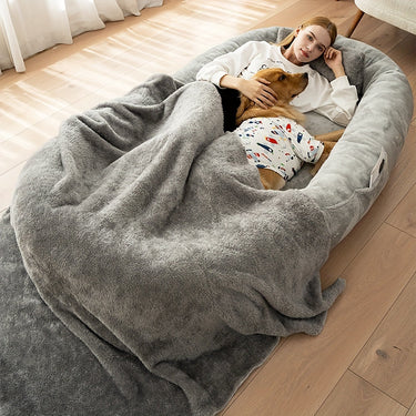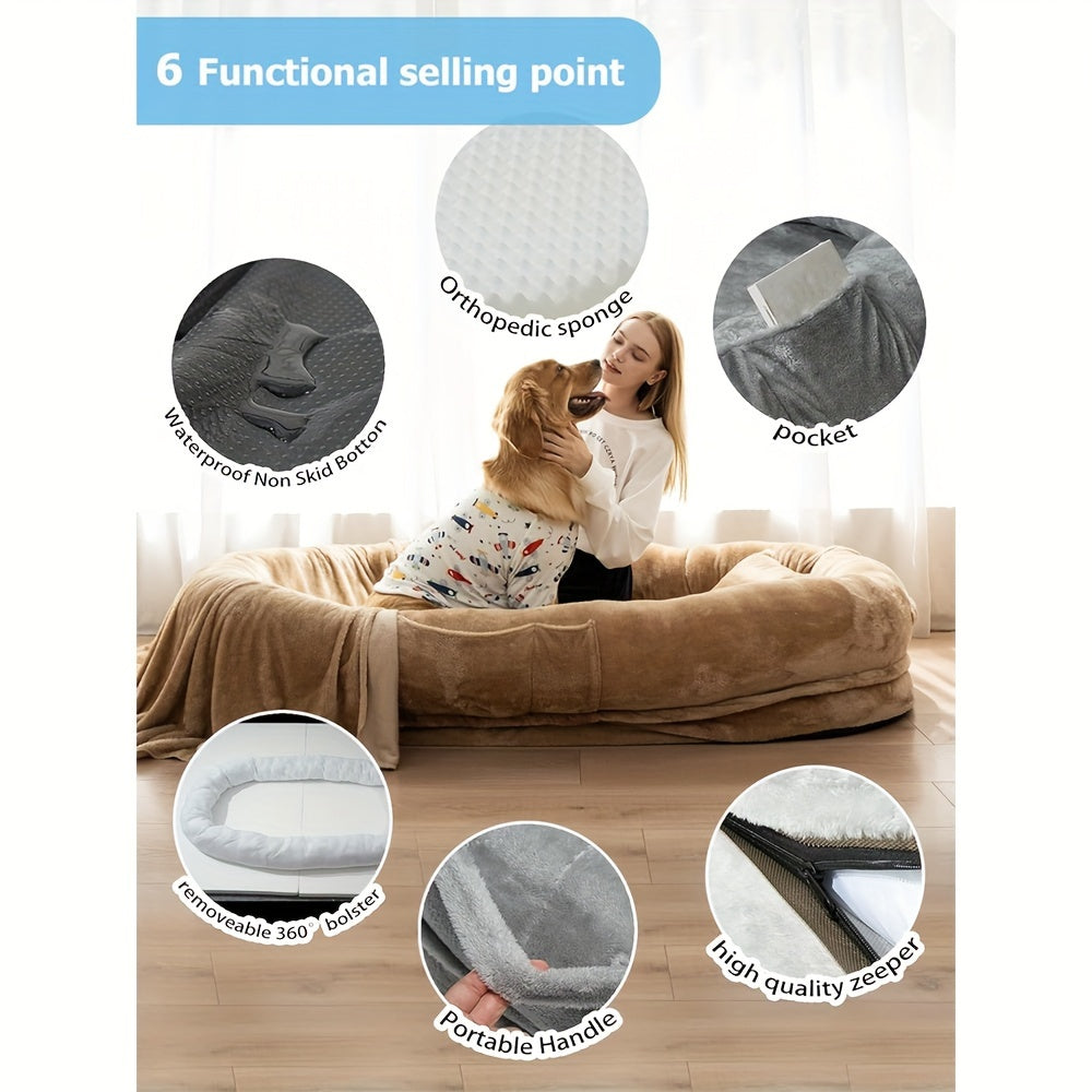 Giant Cozy Human-Dog Bed - Dual-Purpose Luxury Mat - XL 71x40x14 - Ultra-Soft Blanket Pillow - Perfect for Lounging & Snuggling - Fluffy Futon Style - Your New Home Essential