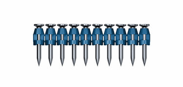 Bosch collated concrete nails are designed for use with the GNB18V-12 cordless 18V Concrete Nailer. Ideal for framing, the fasteners attach metal tracks to concrete. The Bosch 18V concrete nailer comes with both a 22-shot collated magazine (an extra-capacity magazine, which can hold up to 44 collated pins, is sold separately), and a single shot nose piece. The nails and the GNB18V-12 Concrete Nailer were tested and certified together (ICC). The cordless nailer is an ideal replacement for gas-powered concrete nailers, because it eliminates the need for consumable gas cartridges. The easy-to-use depth adjustment uses an intuitive sliding switch. The nails are available in five different lengths, from 5/8 In. to 1-1/2 In.