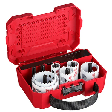 Our 10-Piece HOLE DOZER™ Electrician Hole Saw Kit features a new 3.5 TPI tooth design that offers you the longest life in metal applications. These MILWAUKEE® HOLE DOZER™ Bi-Metal Hole Saws feature the industry's only Lifetime Tooth Break Warranty and can take on all general purpose applications, making them the most durable hole saws. Our ALL-ACCESS SLOTS solve the frustration of plug removal, making you more productive with less downtime between holes. The new slot design also gives you increased pilot visibility for accurate placement and faster chip ejection keeping your cut cool. HOLE DOZER™ Thermoset Coating allows for faster cutting and is optimized for cordless tools, delivering you 25% more holes per charge. Our HOLE DOZER™ Bi-Metal hole saws are proudly made in the USA. This hole saw kit also includes a case, which offers you enhanced customization capability thanks to the interchangeable pegs. You can store arbors, pilot bits, and more in the removable accessory box or remove it entirely to create more space for hole saws. Each Milwaukee Hole Saw Case features a reinforced grid design on the top and bottom, plus heavy-duty latches, securely storing the hole saws within this durable, hard case design. The Milwaukee Small Hole Saw Case fits conveniently in Packout™ Organizers making transportation and storage a breeze.
