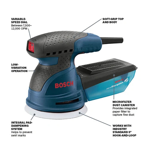 BOSCH ROS20VSC 120V 5" Random Orbit Sander Kit