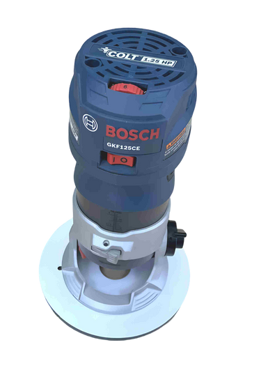 7mm (1/4") thick white phenolic plate is 5-3/4" in diameter and includes mounting screws. Our Phenolic plate is more durable than the acrylic plates others sell.  See our 8320-8390 Routing Plates if you need a bushing plate with two handles. See our 8321-8381 Routing Plates if you need a larger bit opening with two handles. See our 8325-8395 Offset Plates for safer edge routing. Router not included.