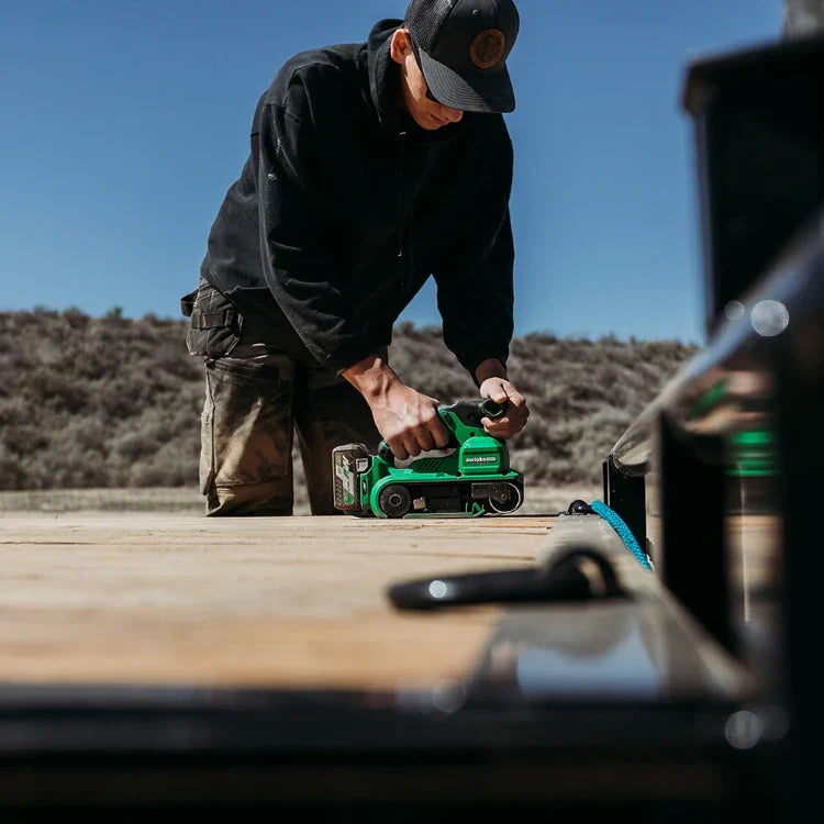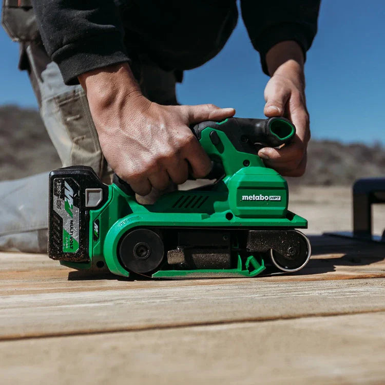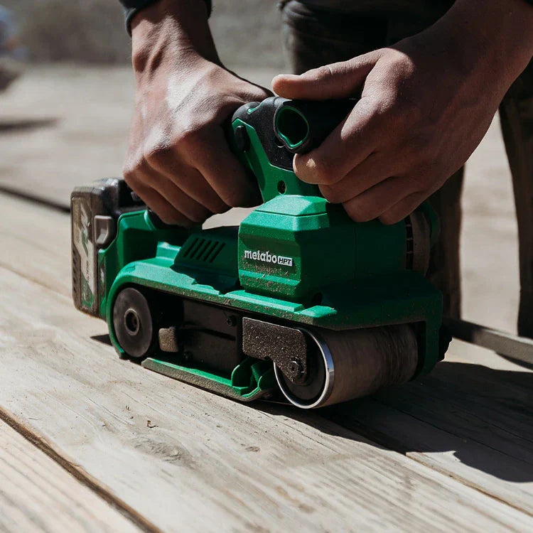 Metabo HPT's 36V MultiVolt Cordless Brushless 3" x 21" Belt Sander (model SB3608DAQ4) is truly revolutionary when it comes to cordless sanding performance. Remodelers, flooring installers, carpenters, deck builders, and DIYers alike, finally have a cordless belt sander solution that does not disappoint. Cutting the cord and having all the freedom of movement of a cordless belt sander now comes with the power, features, and dust collection that demanding users expect. This cordless belt sander is an everyday pro-level woodworking tool for quick touch ups or large scale hardwood projects and everything in between.