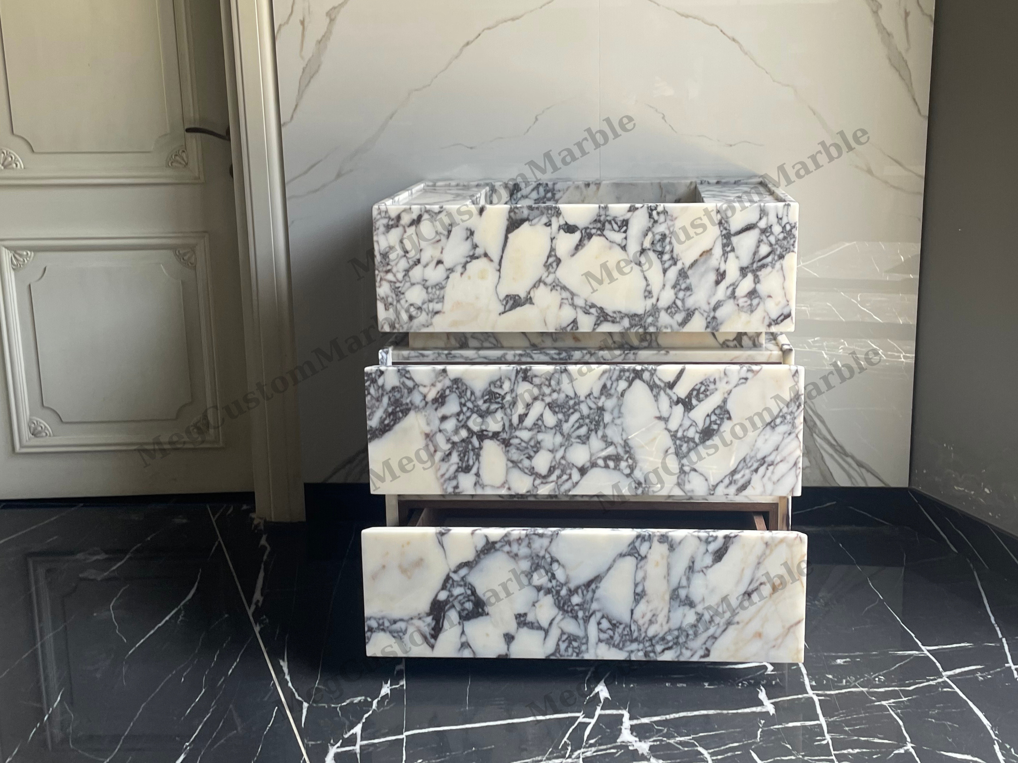 Home Shop Sinks & Vanities Made to-order Freestanding Vanity Unit with marble drawers Calacatta Viola Marble Purple/ Gray Veins