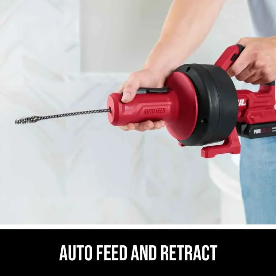 - 20V CORDLESS DRAIN CLEANER KIT – Includes a PWRCORE 20™ 2.0Ah lithium battery and PWRCORE 20™ 30W charger