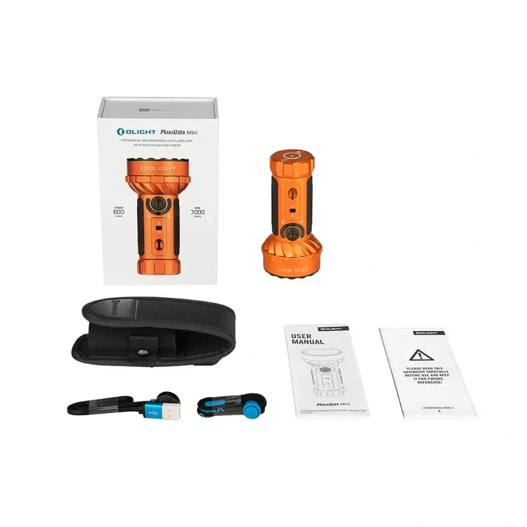 Más pequeño en tamaño, pero increíblemente potente: Marauder Mini, la versión en miniatura del Marauder de Olight, tiene una salida máxima de 7000 lúmenes y un tiempo de funcionamiento máximo de 43,5 horas, gracias a su batería de litio recargable 32650 de 24 Wh personalizada.