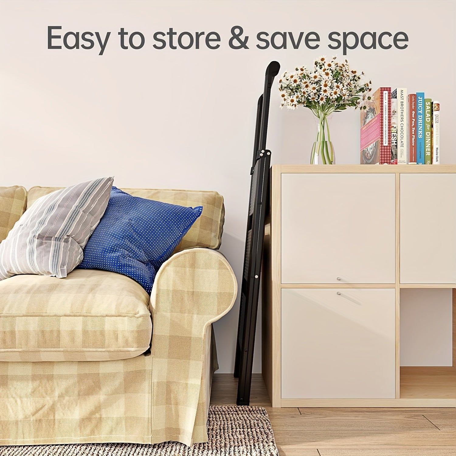 • [Portable&space saving] The steel ladder is easy to open and fold without assembly. It only needs 2 inches (about 5.4 cm) after folding, and can be easily placed in any corner. The lightweight design of the ladder is convenient for storage and transportation, and it can be easily carried indoors and outdoors.