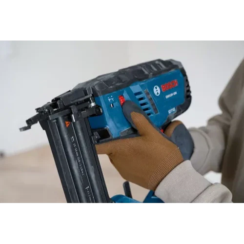 La clavadora de clavos sin escobillas Bosch GNH18V-18M de 18 V y calibre 18 ofrece potencia y precisión en una solución inalámbrica. Disfrute de una productividad ininterrumpida mientras trabaja en espacios reducidos y zonas de difícil acceso, eliminando la molestia de compresores y mangueras. Compacta y con diseño ergonómico, esta clavadora inalámbrica de calibre 18 ofrece a los trabajadores la flexibilidad de acceder a espacios reducidos, a la vez que reduce la fatiga. Su eficiente motor sin escobillas proporciona la potencia necesaria para clavar clavos de calibre 18 de forma uniforme, desde 5/8" hasta 2-1/8", lo que la hace ideal para un acabado impecable en trabajos decorativos de precisión. La clavadora de clavos sin escobillas de calibre 18 tiene un cargador con capacidad para 105 clavos. Al combinarse con una batería CORE18V de 4 Ah (se vende por separado), puede clavar hasta 2000 clavos por carga, lo que garantiza una mayor productividad. La activación con una sola mano simplifica el proceso para un clavado rápido y sin complicaciones, ideal tanto para diestros como para zurdos. Una luz LED doble ilumina el área de trabajo para un clavado más preciso y eficiente. La función de bloqueo de disparo en seco detiene automáticamente la operación cuando quedan solo cinco clavos. Esto no solo evita disparos en seco, sino que también protege la pieza de trabajo de posibles daños. Ajuste la profundidad de forma fácil y precisa con la rueda ergonómica. Además, se minimiza el tiempo de inactividad, ya que los clavos atascados se pueden retirar rápidamente mediante un mecanismo de liberación sin herramientas durante el trabajo. Una interfaz de usuario intuitiva permite alternar fácilmente entre los modos de disparo simple y de impacto, enciende y apaga la luz LED e informa al trabajador sobre el mantenimiento programado de la herramienta. Un gancho para cinturón resistente integrado facilita su portabilidad y almacenamiento entre tareas.