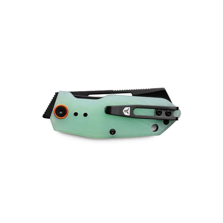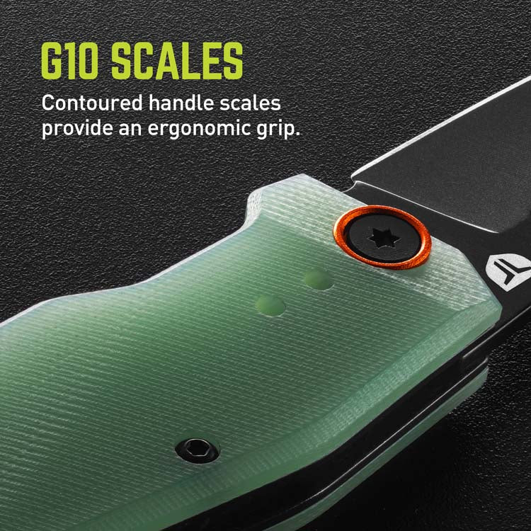 Diseñado para quienes se atreven a destacar, el cuchillo BERM® Cleaver es más que un simple cuchillo; es una pieza que marca la diferencia. Su impactante hoja, combinada con cachas de G10 natural color jade, sin duda atraerá todas las miradas y elogios. Esta incorporación de tamaño mediano a la familia de cuchillos BERM está diseñada con nuestro sistema de pivote Fast Flip con rodamientos de bolas enjaulados, que garantiza un despliegue rápido. La hoja de 6,35 cm está lista para cualquier desafío de corte, ofreciendo un rendimiento de corte preciso con estilo. El clip de bolsillo profundo de 4 vías ofrece opciones versátiles de transporte, tanto para diestros como para zurdos, ya sea con la punta hacia arriba o hacia abajo. Las cachas del mango de G10 conservan el estilo moderno y ergonómico de los demás cuchillos de la familia, a la vez que proporcionan la textura perfecta para un manejo seguro. Reforzada con un revestimiento de óxido negro, la hoja ofrece una resistencia excepcional a la abrasión y la corrosión, lo que garantiza que mantenga su forma refinada año tras año.