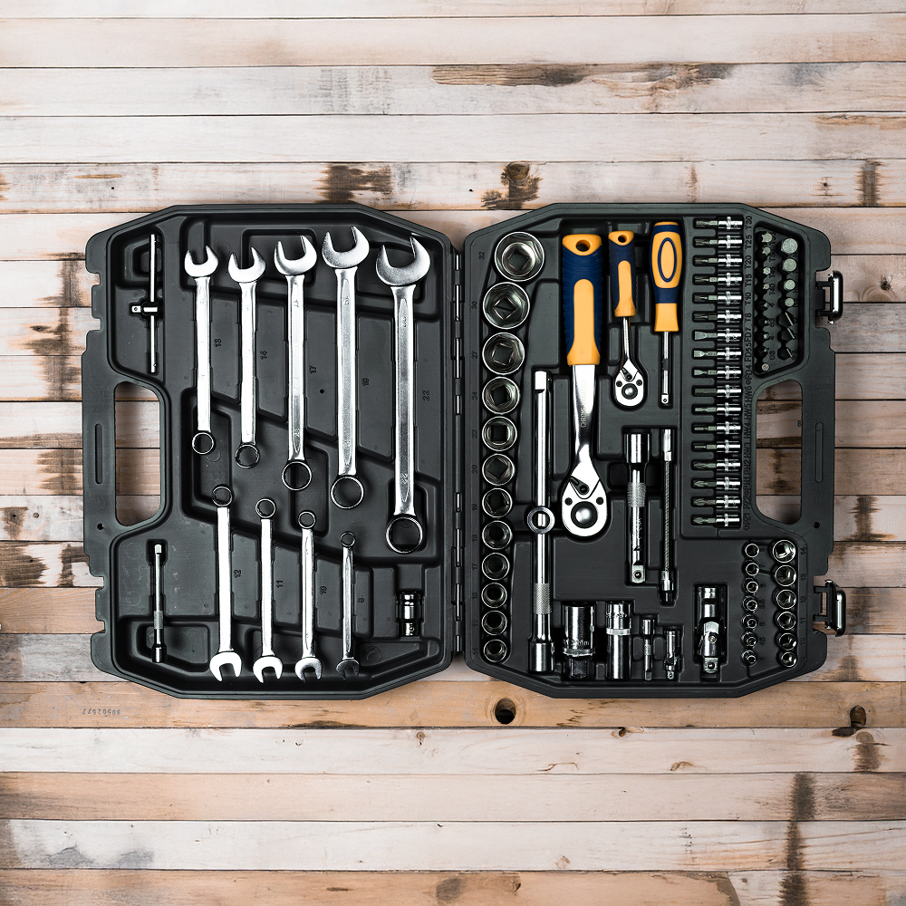 Be ready for any repair or project with our 100-Piece Tool Set—featuring a comprehensive range of hand tools, bits, and accessories. Each tool is crafted for durability and stored in a rugged carrying case for easy transport. Perfect for home, garage, or jobsite use, it ensures you always have the right tool at hand. A must-have for both beginners and seasoned DIYers.