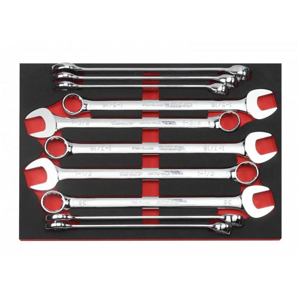 - 7-Piece XL SAE combination wrenches: 1-1/16", 1-1/8", 1-1/4", 1-5/16", 1-3/8", 1-7/16" and 1-1/2"