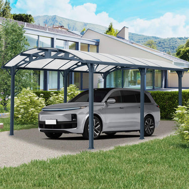 Elevate your outdoor space with the [12X16FT] Large Outdoor Aluminum Arch Carport With Polycarbonate Panels. Engineered for both style and durability, this carport is not just a shelter for your vehicles but a statement of elegance and practicality. Its sleek arched design maximizes headroom, delivering both aesthetic appeal and functional versatility. Whether you're shielding your SUV, MPV, or sedan from harsh sun, heavy rain, or snow, its premium materials and cutting-edge features have you covered. Make your driveway a haven of protection and style with this expertly crafted carport.