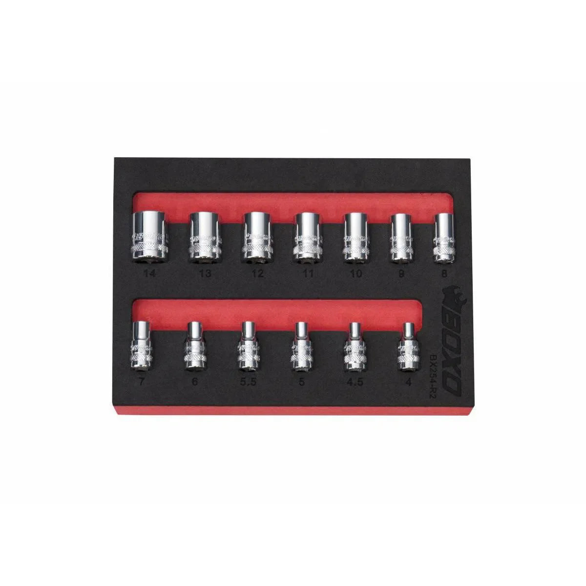BoxoUSA 13 Pc 1/4" Drive Metric Standard Length 12 Pt Chrome Socket Set | 1/9th EVA Foam BX254-R2 BoxoUSA 13 Pc 1/4" Drive Metric Standard Length 12 Pt Chrome Socket Set | 1/9th EVA Foam BX254-R2