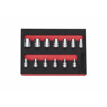 13 Pc 1/4" Dr Metric Standard Length 12 Pt Chrome Socket Set Includes: 4, 4.5, 5, 5.5, 6, 7, 8, 9, 10, 11, 12, 13 & 14mm Sockets. Modular EVA Foam 1/9th Drawer Tool Organization Insert Included.
