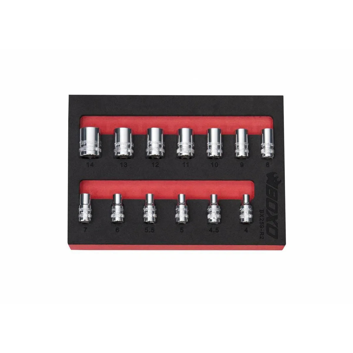 BoxoUSA 13 Pc 1/4" Drive Metric Standard Length 6 Pt Chrome Socket Set | 1/9th EVA Foam BX259-R2 BoxoUSA 13 Pc 1/4" Drive Metric Standard Length 6 Pt Chrome Socket Set | 1/9th EVA Foam BX259-R2
