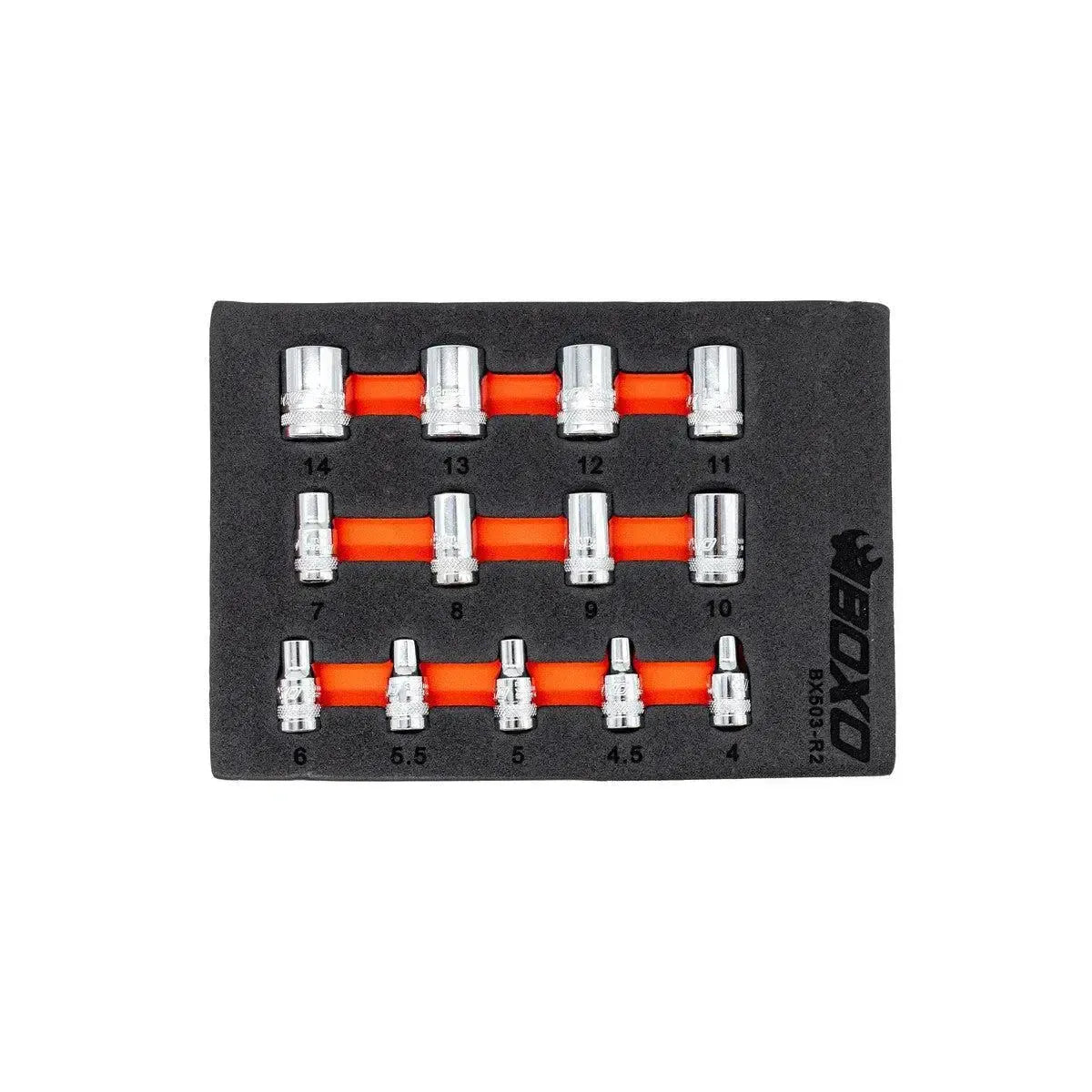 BoxoUSA 13 Piece 1/4" Drive Spline Socket Set | 1/9th EVA Foam BX503-R2