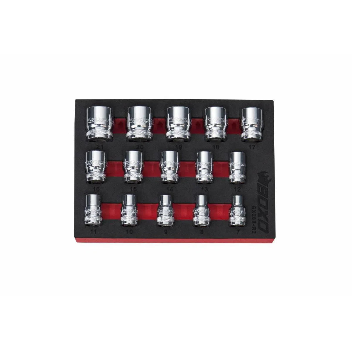 BoxoUSA 15-Piece 3/8" Drive Metric Standard Length 6-Point Chrome Socket Set | 1/9th EVA Foam BX268-R2 BoxoUSA 15-Piece 3/8" Drive Metric Standard Length 6-Point Chrome Socket Set | 1/9th EVA Foam BX268-R2