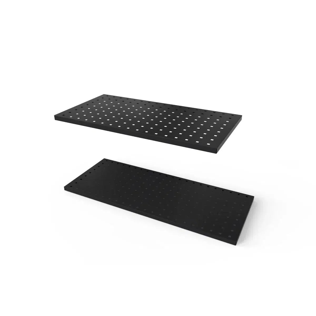 Create a clutter-free worktop and increase the functionality of your OSM tool storage system with perforated back panels. These 26" panels mount onto the support brackets which attach to the back of 26" cabinets and overhead cupboards to provide additional functional workspace. Add accessories such as paint can holders, cable holders, impact wrench holders, tool hangers or document trays to keep materials organized and improve your work environment.