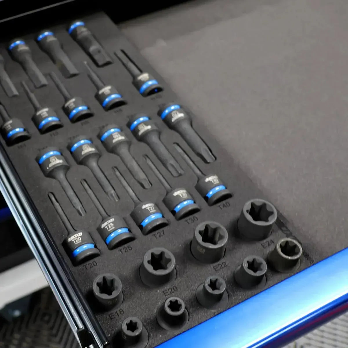 28-Piece 1/2" Drive Impact E-Torx, Torx, and Hex Socket Set | 1/3 Drawer EVA Foam