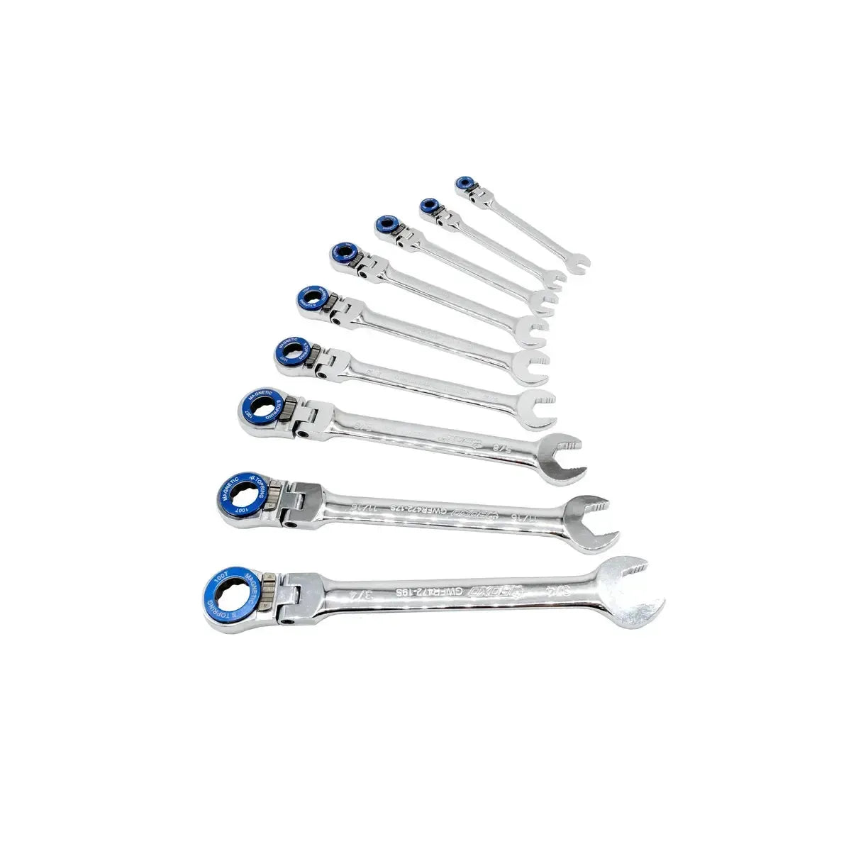 9-Piece Flex Head 100T SAE Ratcheting Combination Wrench Set with Magnetic Stop Ring and Grip Open End Set Includes: