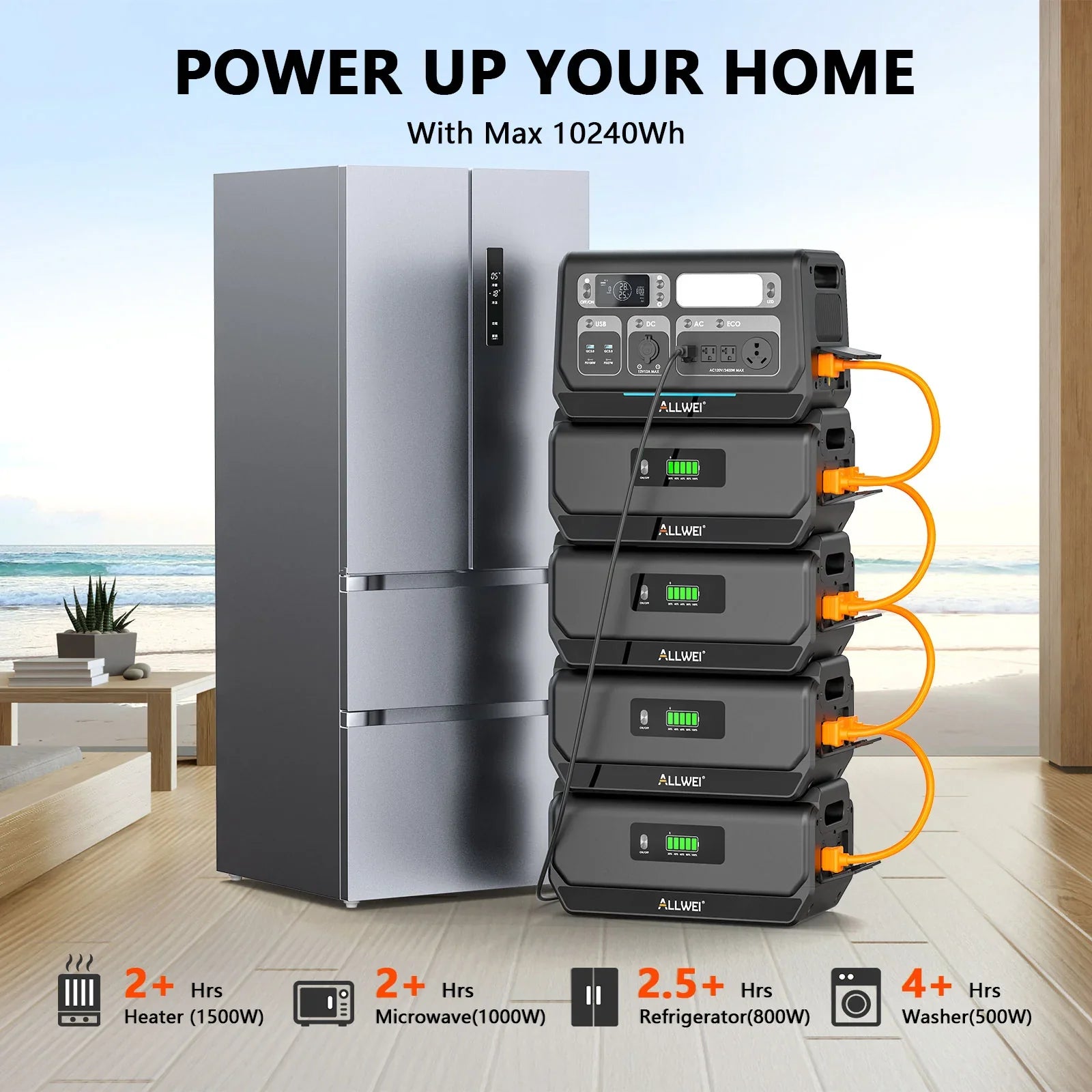 • Supports 4 extra batteries, boosting capacity from 2kWh to 10kWh for backups and RV trips.
