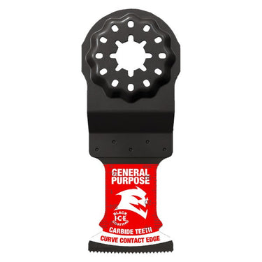 Diablo’s Starlock carbide oscillating blades feature application specific designs that deliver extreme durability and superior cutting life in general purpose cuts: nail-embedded wood, clean wood, metal and plastics. High-performance carbide teeth deliver an unmatched up to 50X longer cutting life versus standard bi-metal blades. Curve contact edge creates a pilot for precise, clean plunge cuts with less vibration. An optimized blade design and Black I.C.E. (Industrial Cooling Element) keeps the teeth cool and build up free for fast, clean cuts. Tool free quick-change interface fits Fein and other Starlock tools; also compatible with non-Starlock multi-tools.