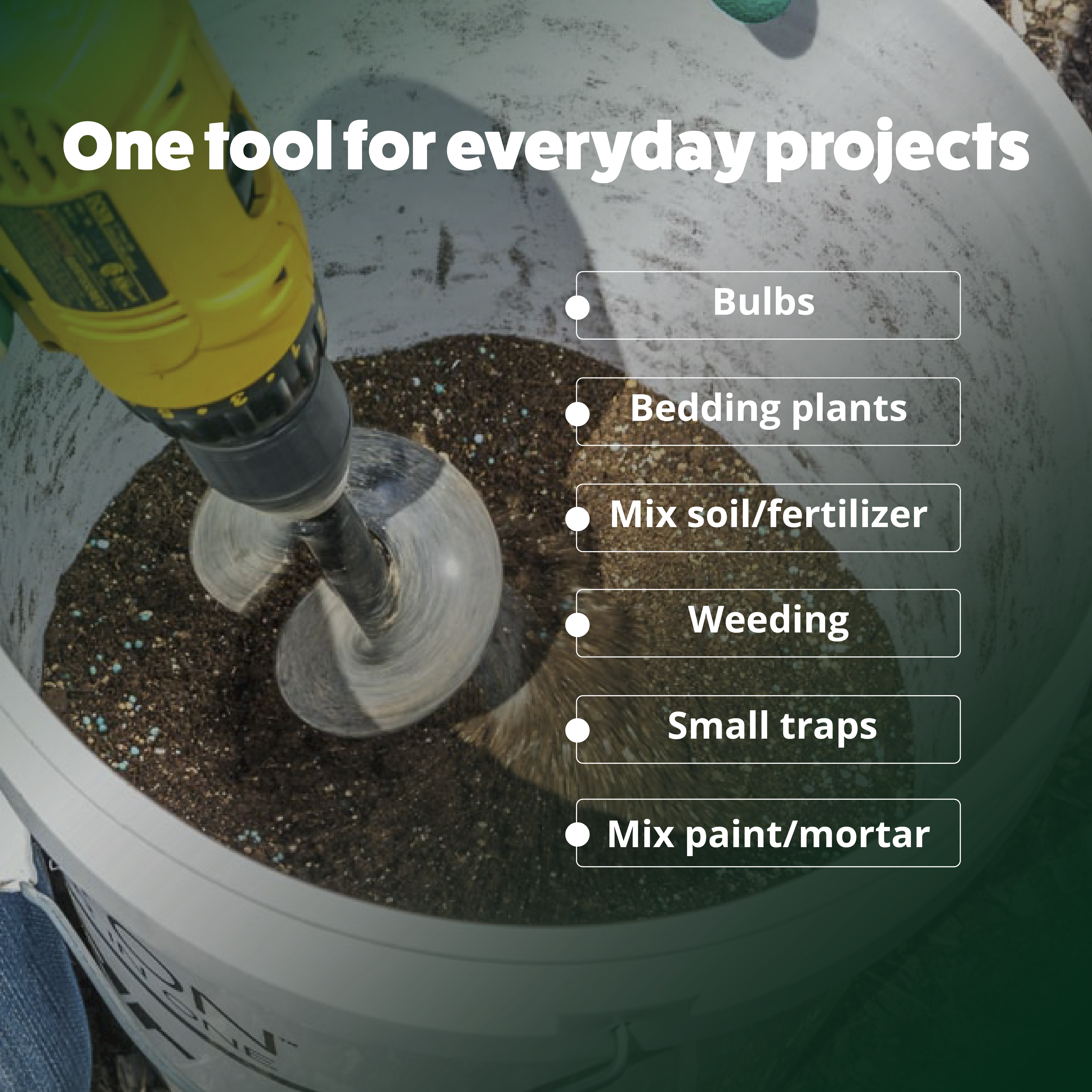 - Mixing soil amendments, fertilizer, seed, paint, and more