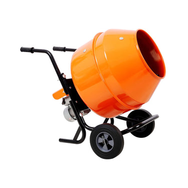 • Featuring two large 10-inch wheels, this cement mixer is incredibly easy to maneuver across uneven ground, allowing for quick and smooth transport around any job site.