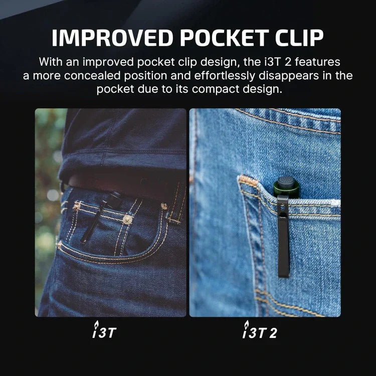 Brand New Clip: The clip on the i3T 2 is now stuck between the battery cover and the body -- never worry about falling off and it allows for deeper pocket carry.