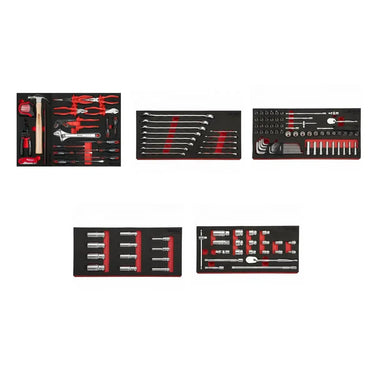 - Comprehensive Selection: A complete set of ¼” and ⅜” drive 12-point sockets, combination wrenches, and essential hand tools.