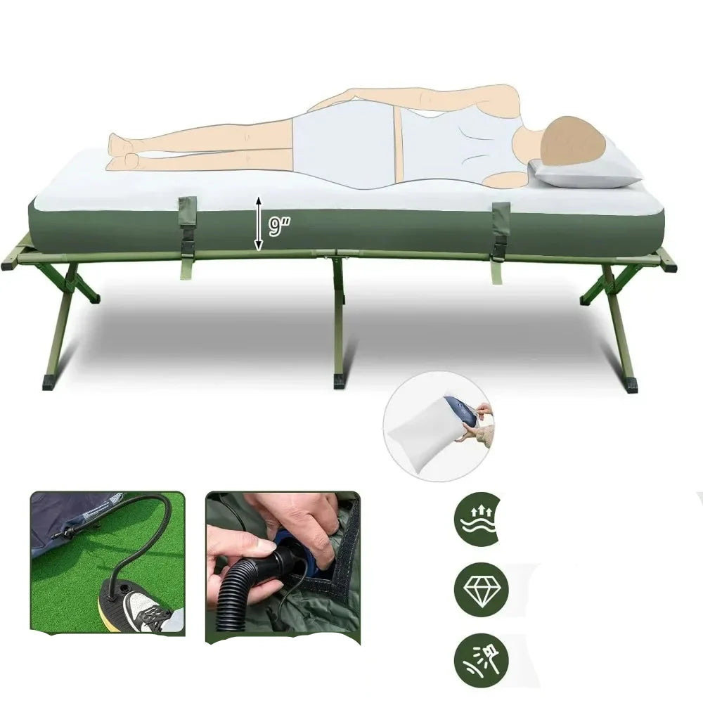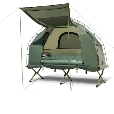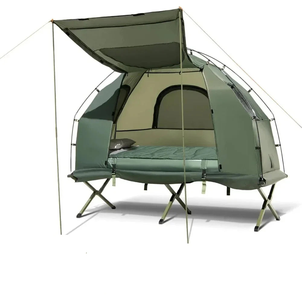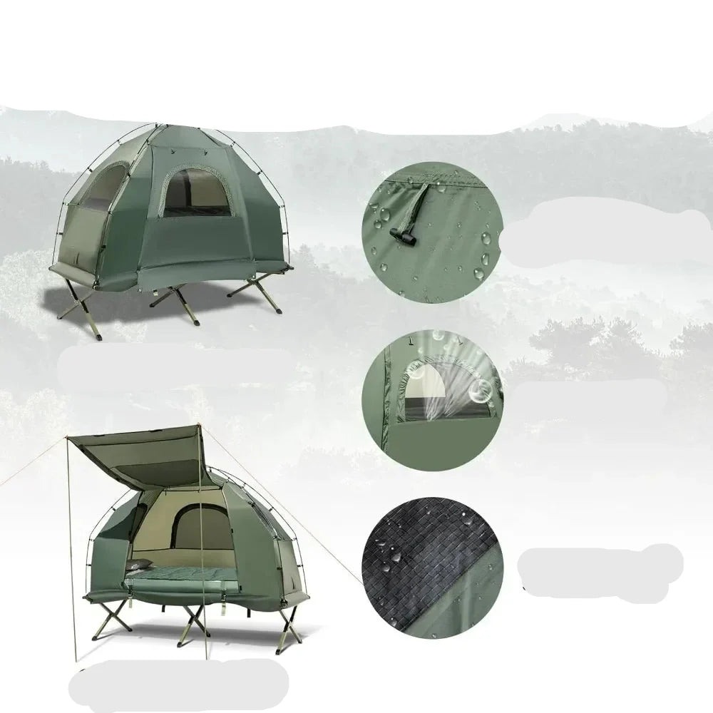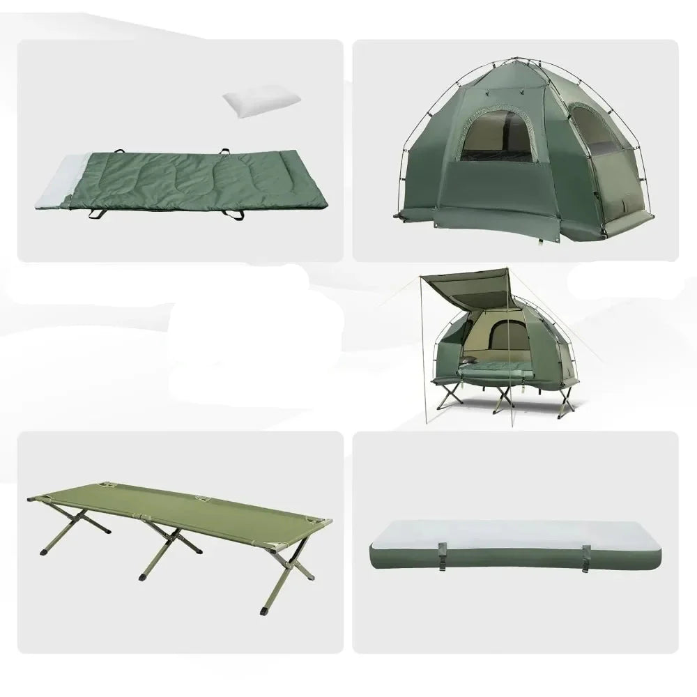 Elevate your camping experience with the Sleep Elevated and Protected: All-in-One Tent Cot. This innovative product provides a comfortable elevated sleeping surface, protected from the ground and elements. Perfect for outdoor enthusiasts who value a good night's rest.