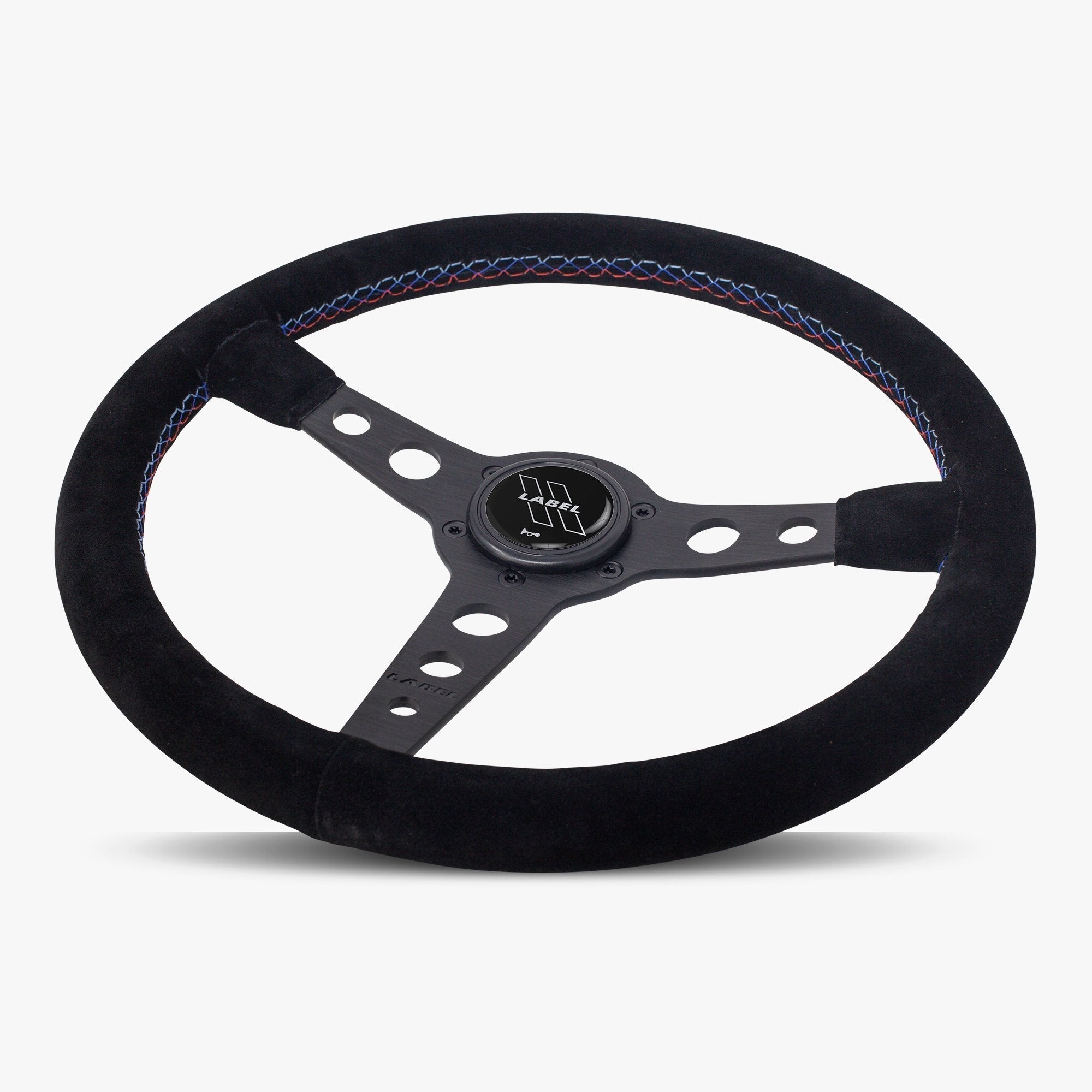 The Daytona | Black Alcantara Suede | Black Spoke | Bavarian Stitch